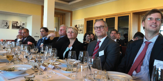 From Bavaria, we hopped on a high speed train powered by electricity, whipping through the German countryside — riddled with solar panels and wind turbines — toward Berlin. Our first stop in the capital city was the German Foreign Office, where the Bunderstag (German parliament) hosted a dinner of our Minnesota delegation and German guests.